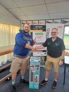 Adrian from Thorn Lighting sponsored the longest drive on Hole 10 for the Ambrose Teams.